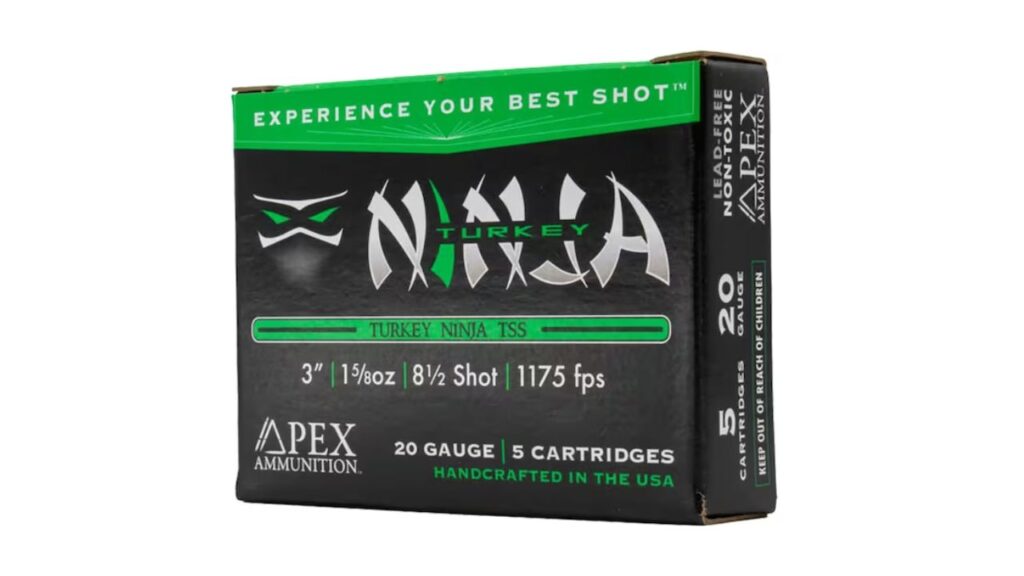 Apex has built a strong reputation with serious turkey hunters, and their Ninja TSS loads are a big part of that. Using Tungsten Super Shot, they deliver devastating energy and extremely dense patterns. What sets Apex apart is the attention to quality—every round is hand-loaded to tight standards, which gives hunters confidence in consistency.