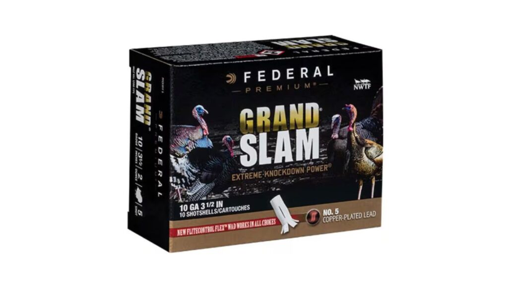 Federal’s Grand Slam is designed as a budget-friendly turkey load that still performs well. It uses copper-plated lead and a buffering system to keep shot from deforming, which helps maintain pattern density. Many hunters appreciate that it offers reliable results without the steep price tag of premium rounds.