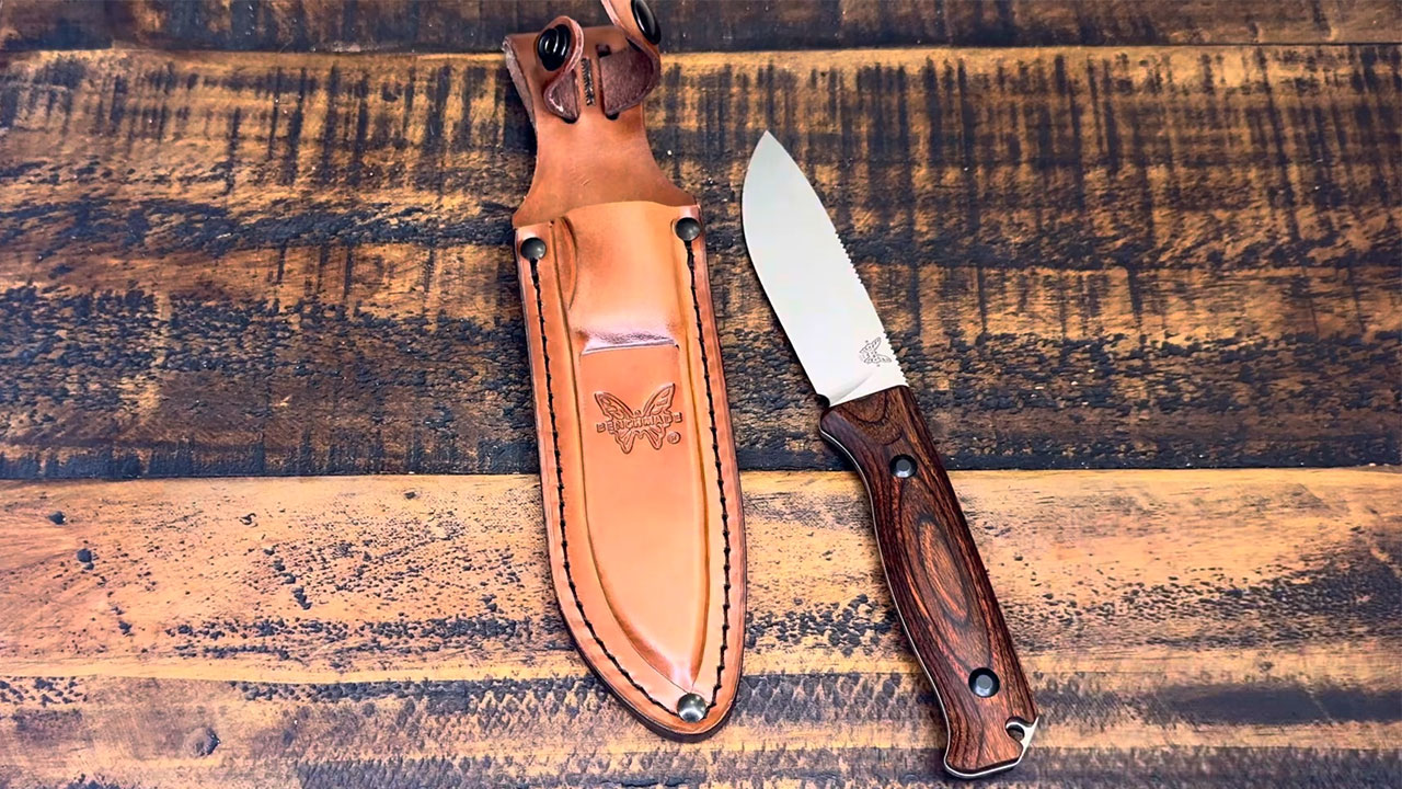 It also helps that Benchmade has long offered this pattern with light sheath options, including Kydex and leather in older catalog specs, which fits the whole idea of keeping carry simple and close. In real use, that matters because a compact knife with a controlled sheath footprint is usually much easier on jackets, gloves, and pack straps than a larger handle with aggressive contouring. This is the kind of knife that feels like it was built for hunters who actually move a lot instead of hunters who mostly admire gear at camp.