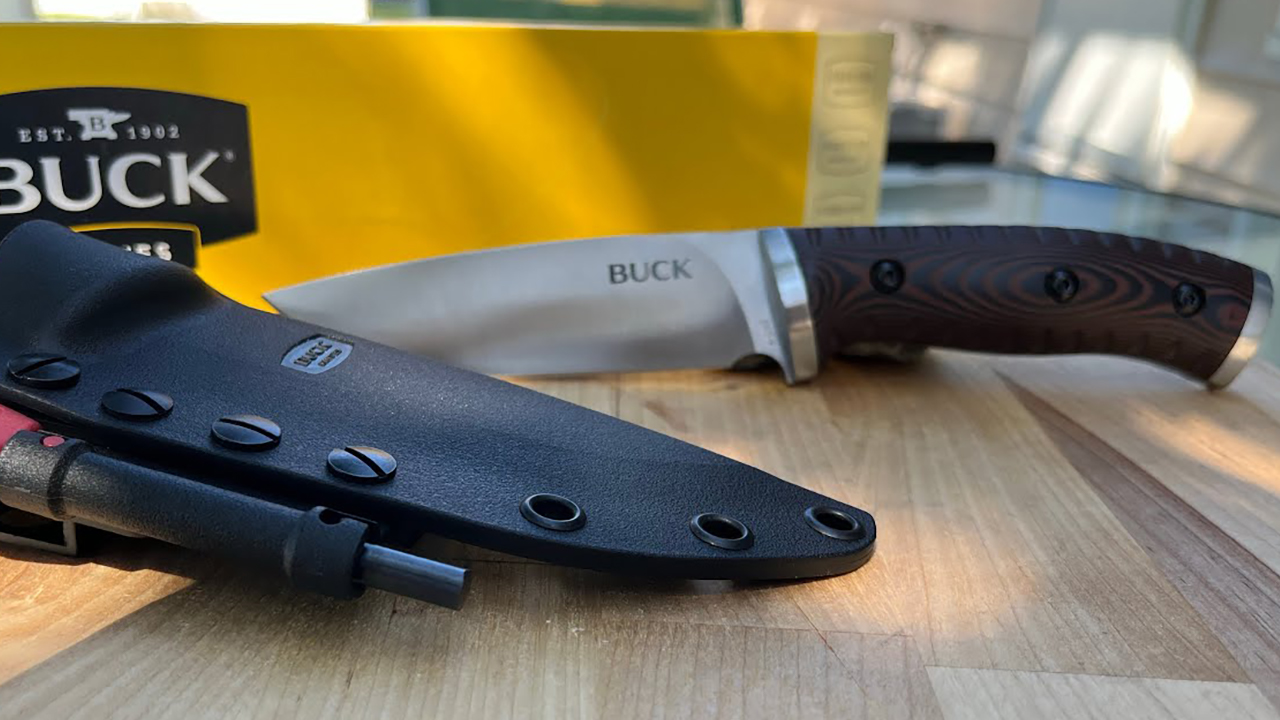 The Selkirk sits a little closer to the survival side of the hunting world, but Buck still keeps enough control in the package for it to work here. Buck describes the Small Selkirk as a quick-access trail knife with a Micarta handle and included sheath. That “quick-access” part matters, because knives that draw clean usually also carry cleaner than the ones that require a bunch of extra adjustment every time you reach for them.