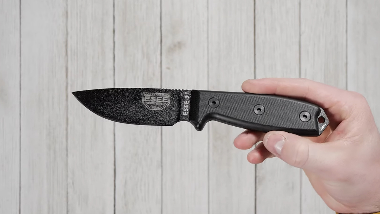 The ESEE-3HM is a smarter pick than the standard ESEE-3 if your main concern is comfort around extended cutting and gear carry. ESEE lists this version with canvas Micarta handles and either a leather pouch or Kydex sheath. That matters because the HM version was built with a different, more hand-filling handle profile than the flatter standard version. In plain English, it feels a little more natural in long use and a little less like a slab-sided work knife.