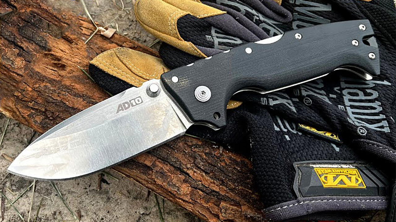 The AD-10 is built around exactly the kind of stuff that helps a folder stay tight under hard use. Cold Steel gives it full-length aluminum liners, oversized hardware, G10 scales, and the Tri-Ad lock, which the company has spent years marketing as one of its signature strength advantages. The AD-10 page also makes it plain that the design is meant to bring some of the feel of Andrew Demko’s larger hard-use folders into a more carryable package.