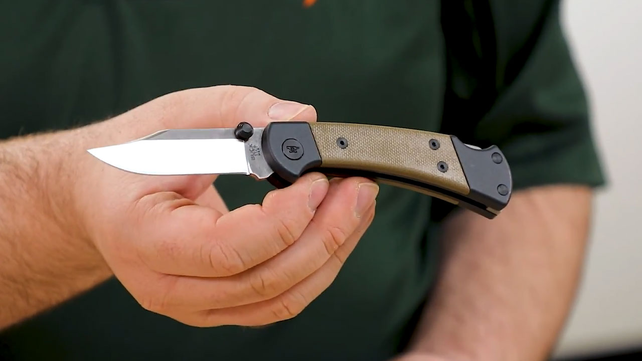 The 112 Ranger Sport is one of the better examples of a traditional brand updating a classic pattern the right way. Buck describes it as a “Pro EDC pocket knife” with Torx hardware, a deep-carry clip, an aluminum frame, and Micarta scales. That takes the old 112 shape and makes it far easier to carry every day than the classic belt-sheath version.