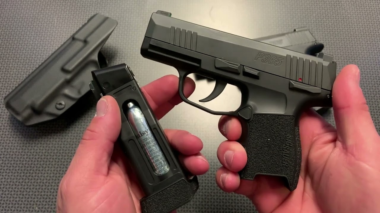 The Sig Sauer P365 air pistol is a near-perfect replica of the real thing, making it a great training tool for those who carry the actual P365. It has the same grip, sights, and controls, and even fits most P365 holsters. The blowback action gives it a realistic feel, and the removable magazine holds both the CO2 cartridge and 20 BBs.