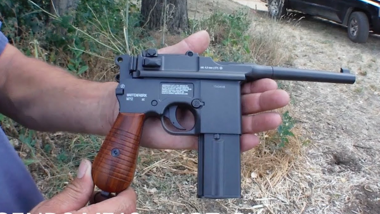 The Umarex Mauser M712 is one of the most exciting full-auto BB pistols out there. Modeled after the famous Mauser C96, this replica has a metal frame, wood-look grips, and a select-fire switch for semi or full-auto mode. The magazine holds 18 BBs and the CO2 cartridge, and the gun cycles just like the real thing.