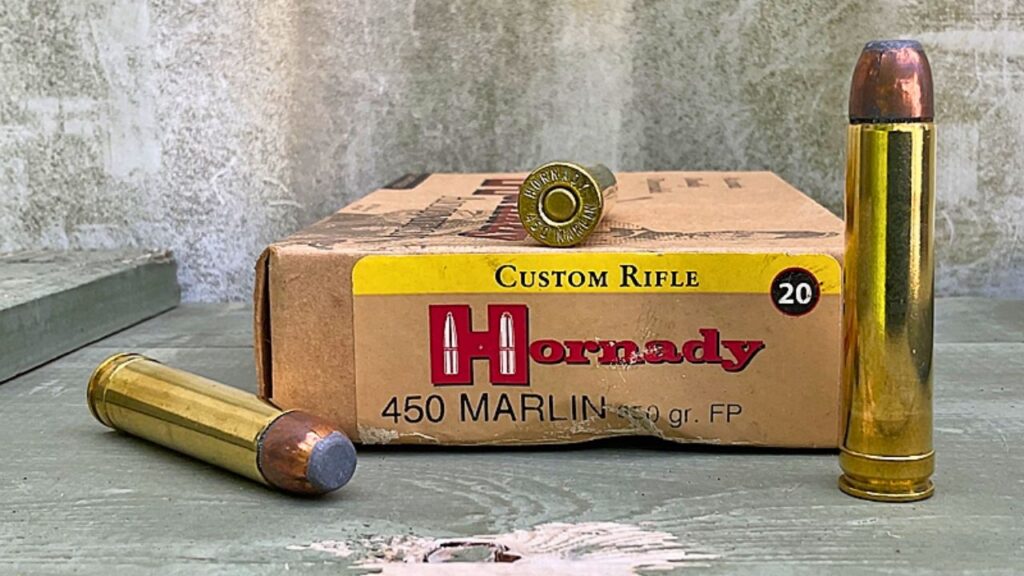 The .450 Marlin came in hot as a “modern” replacement for .45-70—but it never really caught on. It kicks like a mule, and ammo costs are steep for what you get. Ballistics aren’t bad, but they’re not better enough to justify the abuse.