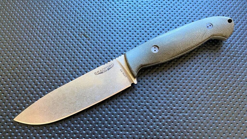 The Bradford Guardian 5.5 uses MagnaCut steel, a modern stainless option with excellent edge retention. It cuts cleanly through meat and bone and stays sharp even after heavy wood work. The knife’s balance makes it great for long sessions without tiring your hand, and you won’t be stopping to sharpen every hour.