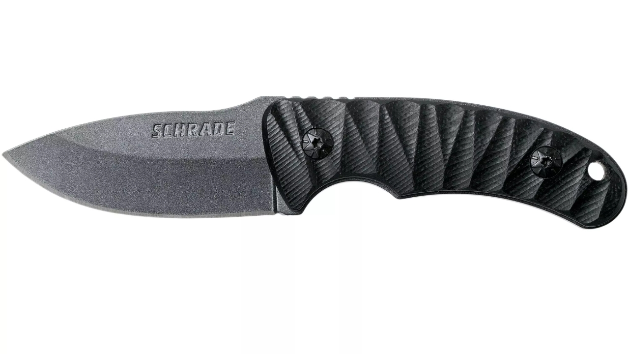 Compact and capable, the Schrade SCHF57 is a small fixed blade with a high carbon steel construction. It takes a sharp edge and can handle tough cutting tasks without rolling or chipping. The G10 handle scales give good control for detailed work, and its size makes it easy to carry on a belt or pack strap. It’s an affordable knife that performs like something much more expensive.