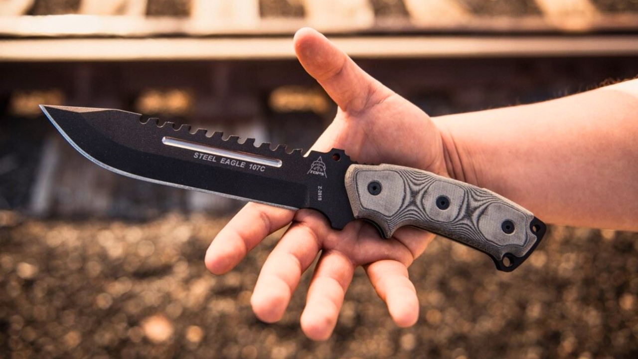 The Steel Eagle 107C is a serious slab of 1095 steel, built with a sawback spine and a thick full-tang design. It’s not light, but it doesn’t care. It’ll chop, baton, and pry without flinching. The handle is shaped for control, even when you’re wearing gloves.
